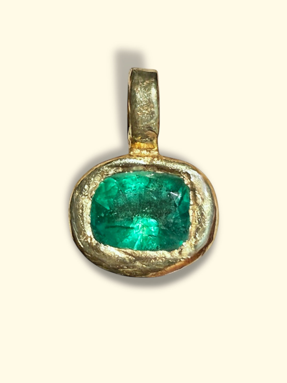 Pebbles Emerald Bezel Set Earrings with Diamonds 18 Ct Gold (Available at Stardust London, 101 Walton Street)