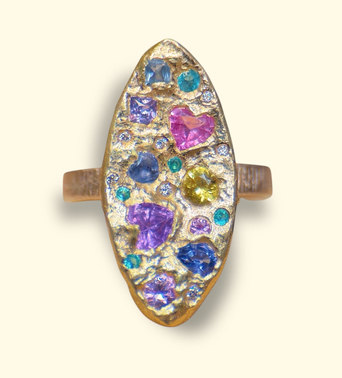 Marquise Pastel Abstract Cocktail of Joy Ring Sapphires, Paraibas, Diamonds 18 Ct Gold