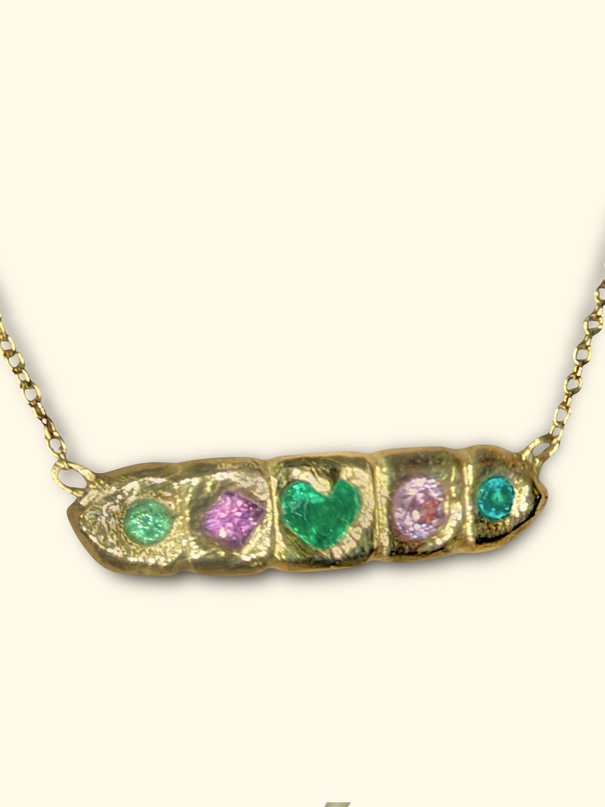 Emerald Heart Paraíba Tourmalines Sapphires Bar necklace in 18 Ct Gold