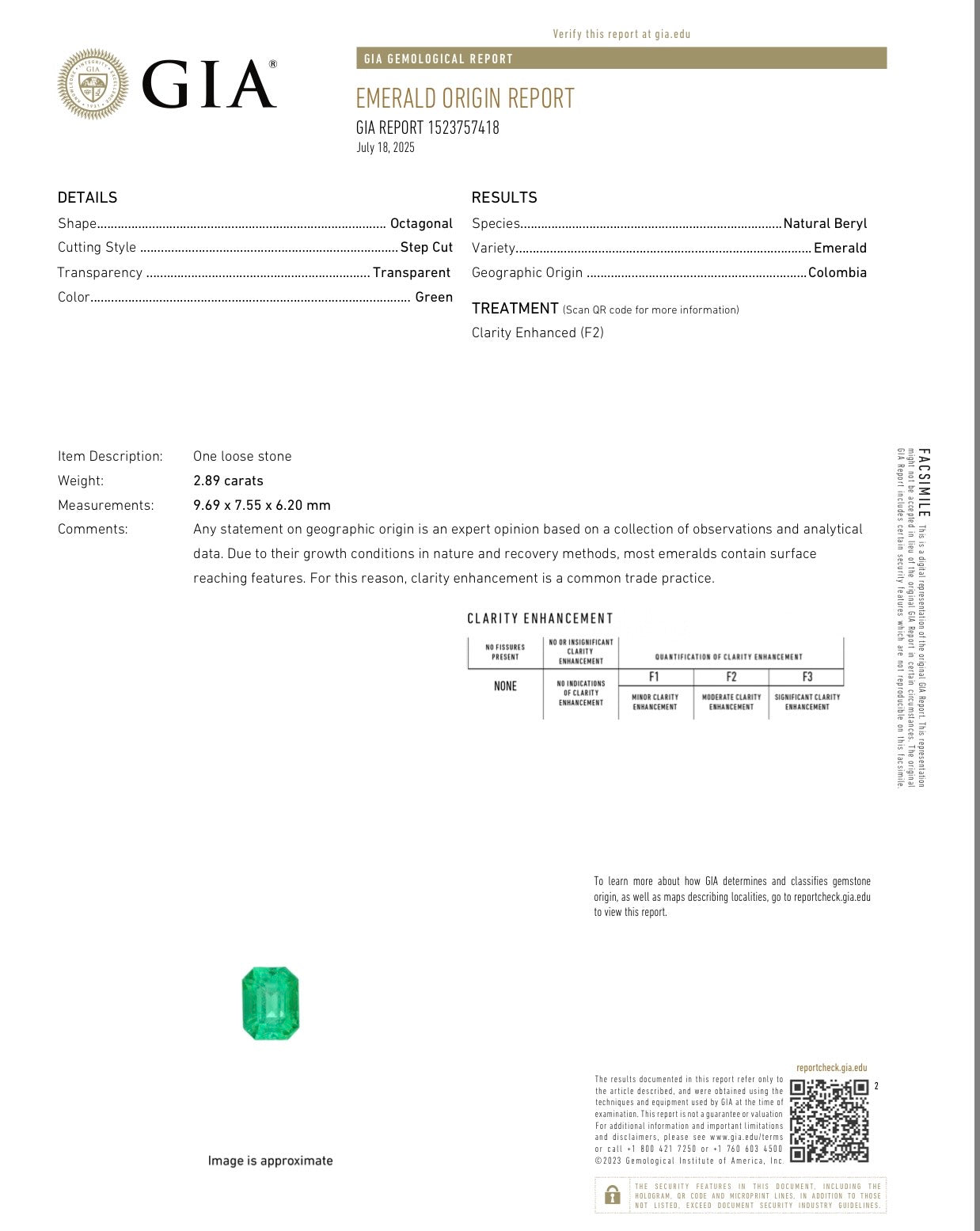 • 2.89 Cts Colombian Emerald in Emerald Cut