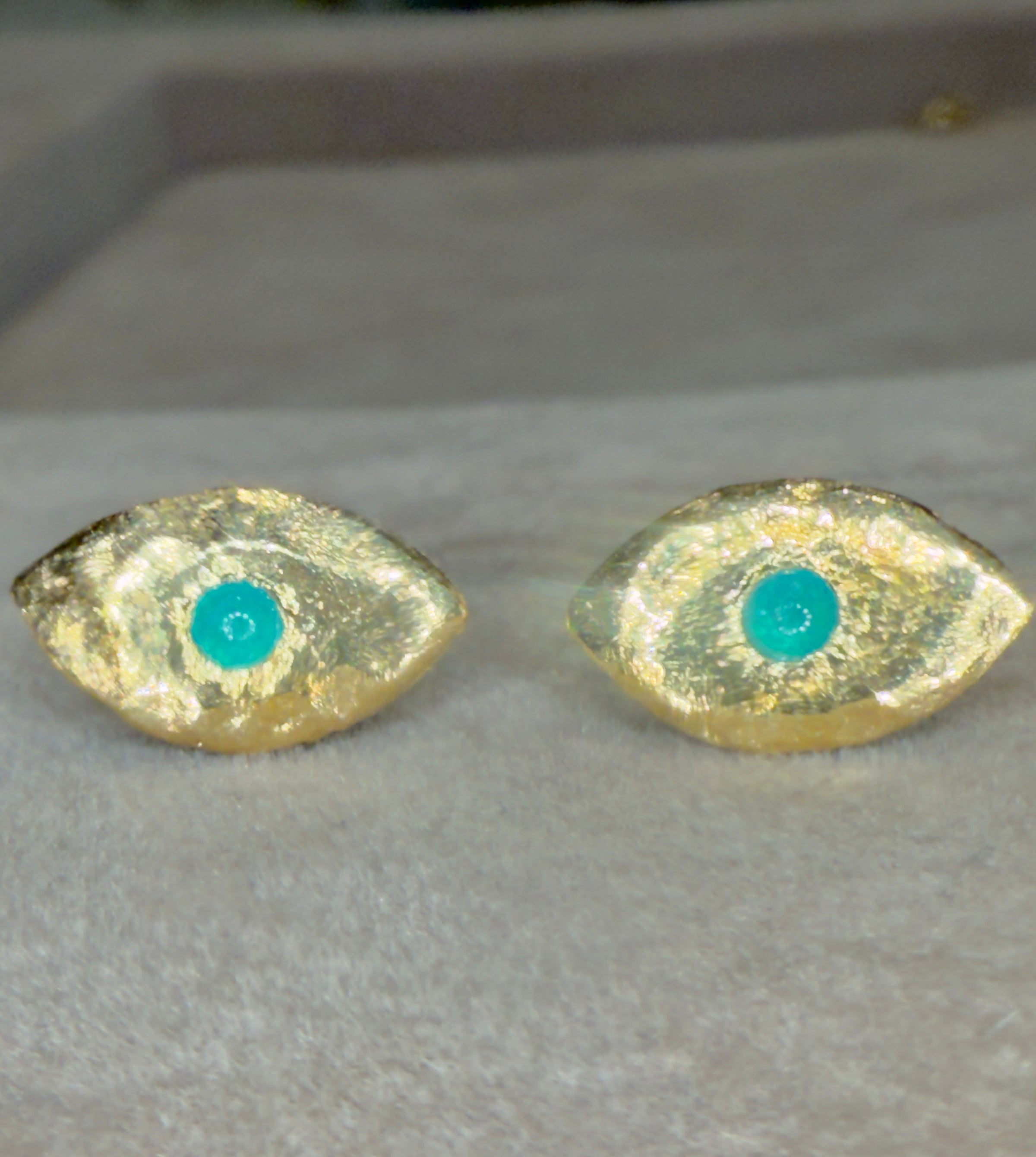 Radiating an electric ocean-blue glow, these minimalist studs feature natural Brazilian Paraíba tourmalines Cabochons flush-set in 18k yellow gold. The smooth surface of the gold allows the gemstones to shimmer as if lit from within, giving a refined, contemporary twist to a classic stud. Subtle yet striking, they are the perfect everyday jewel — light, versatile, and effortlessly luminous.