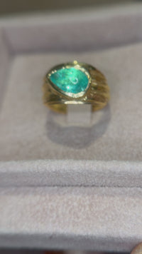 2.5 Cts Paraiba Cabochon Cigar Ring Band 18 Ct Yellow Gold